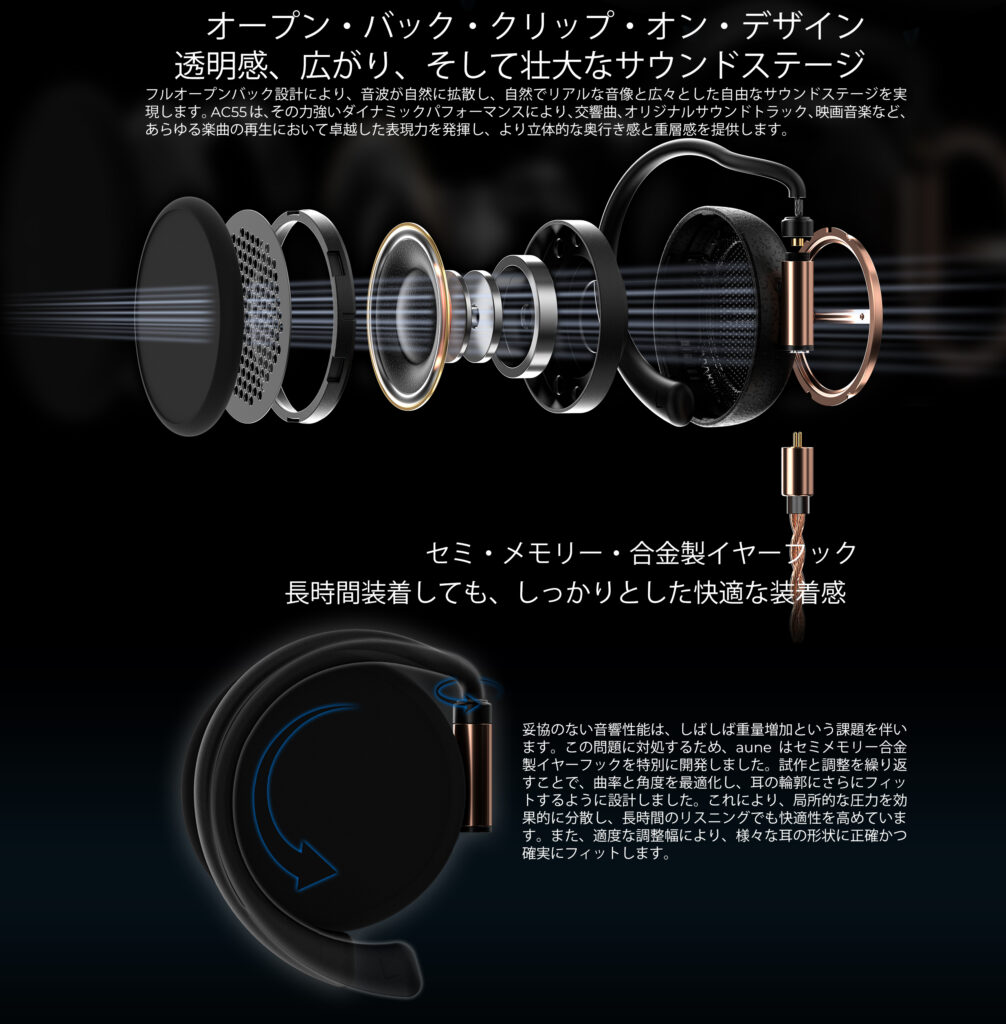 aune audio AC55 耳掛け式ヘッドフォン リケーブル対応 - ミミソラ