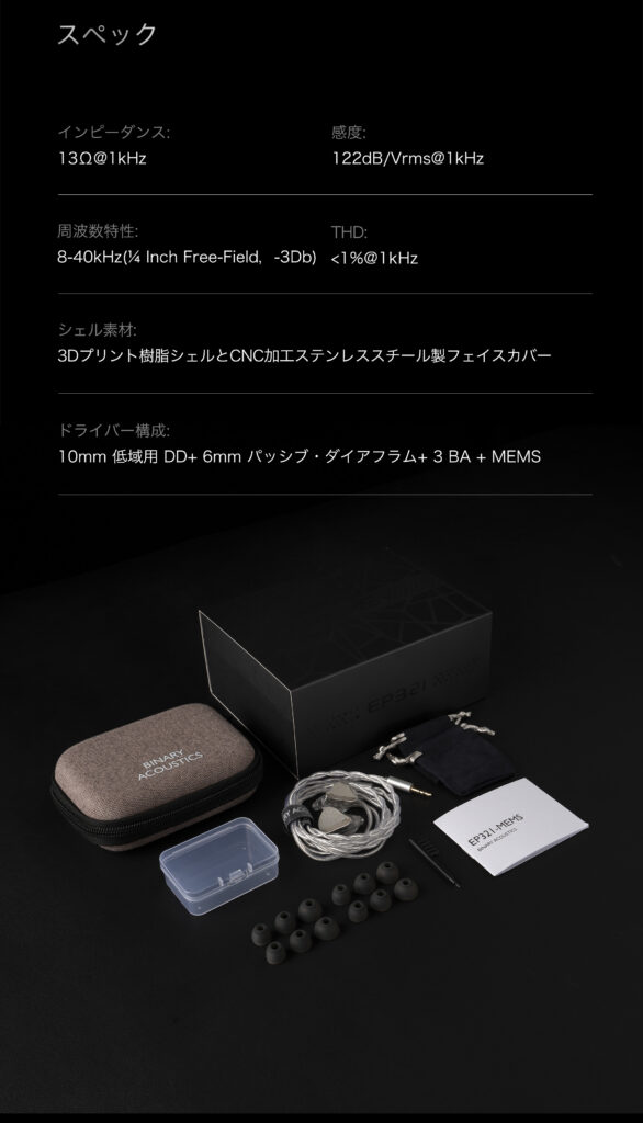 Binary Acoustics EP321-MEMS インイヤーモニター 新型MEMSドライバー搭載 - ミミソラ