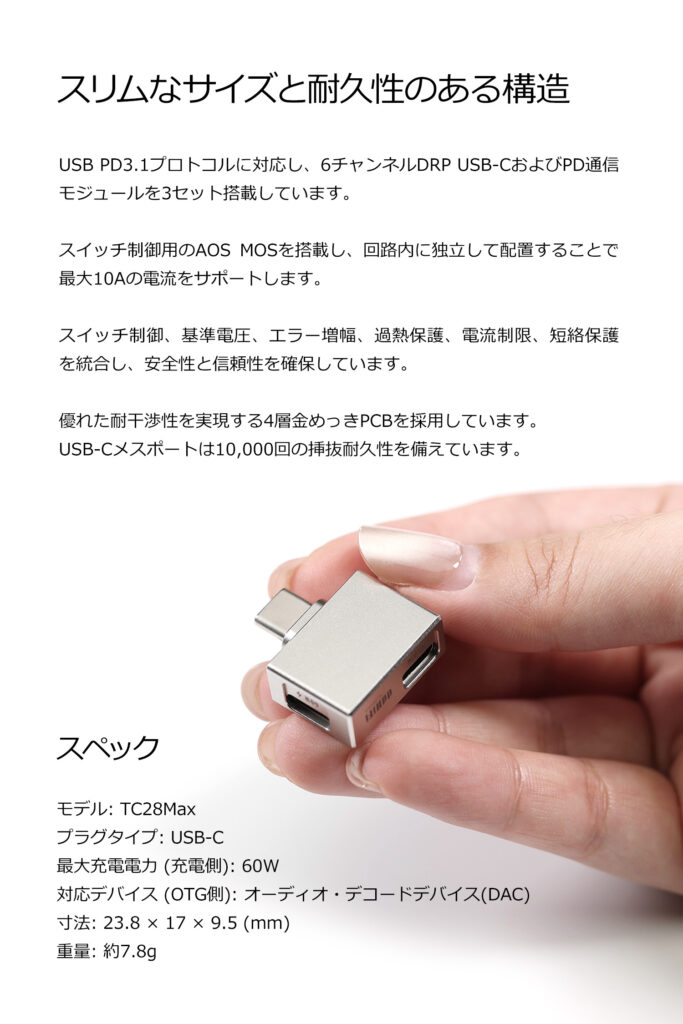 USB-C OTGアダプターとして第三世代。充電用入力付きUSB OTGアダプターの第二世代となるTC28Maxが登場です